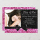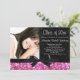 Rosa Gnistra-titta med svart Bow Photo Studenten-inbjudan, med lodräts orientering.