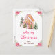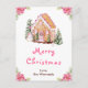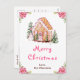 Den här eleganten och det här julvykortet för julgranar i fjol kan vara personlig med din familj namn. Den har ett vattenfärgat gingerbrödhus och vackra rosa poinsettia-blommor. Texten kombinerar handskript och sans serif typsnitt för en snyggt och ett modernt utseende. Snögubbe, det dekorerade gräs träd och helgdag-andedräkten tillför en festlig beröring.