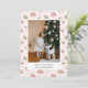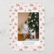 Jul kort med en söt pastellrosa och grön tapet bakgrund med ett familjefoto i par med en julhälsning och ditt namn och år i en sans serif teckensnitt.