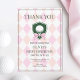 Pink Golf Modern Hole In One Girls 1st Birthday Thank You Card är ett modernt och sofistikerat sätt att visa tacksamhet efter din lilla golfspelares stora dag! Med en mjuk rosa och beige argylebakgrund, en grön golfkam med boll och band, och lekfulla men ändå eleganta typsnitt är detta kort den perfekta matchen för din golfinspirerade fest.