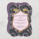 En romantisk bröllopsinbjudan till gothisk bröllop, som är fängslad med sitt känsliga men moody färg. Vapenskölden på ro, skalle och mönster med guld ram ger en elegant. Den mörk lilans omvända egenskaper har en blommigt buquet med ro och en skalle. För alla gotiska älskare med en stiltråd, långt ifrån de vanliga röda och svarta mönstren, som det finns tusentals av. Enkel att anpassa. Klicka bara på knappen "personalisera" och gör den till din egen.