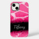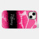Ljusa djur har mönstrat iphone case i svart och rosa hues. Anpassa det här objektet till första namn. Det här exemplet lyder för närvarande: Tiffany. © original mönster by Sarah Trett. Utformningen baseras på det mönster som hittas på en giraff med ett rastermått för punktförstoring över mönster.