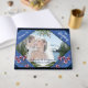 Blå vintage och texturerat kreativ-mönster med rosa grafisk blomdekoration för att en gäst eller en strandstuga ska kunna hålla i bröllop.