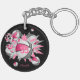 Den här roligt basketbollens temakedja har en "explosion" av rosa-, vit- och grått-basketskulor av olika storlek och grått- och rosa-stjärnformer - rosa stjärna har en liten mönster av vit polka dots - anpassa med idrottsmannens namn & jersey-nummer, front & back - bakgrunden färg på nyckelkedjans framsida och baksida är anpassade - av katz_d_zynes