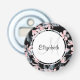 En öppnare i flaska med en elegant mönster med en vattenfärgad illustration av rosa blommor med blå grått löv och stjälkar. En vit cirkel som läggs ovanpå med ditt namn och som initialt innehåller ett monogram.