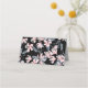 Vikt platskort med elegant mönster tillverkat med en vattenfärgad illustration av rosa blommor med blå grått löv och stjälkar.