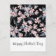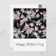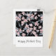 Ett vykort i Mors dag med elegant mönster med en vattenfärgad illustration av rosa blommor med blå grått löv och stjälkar.