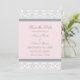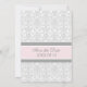 Tillkännagivandekort för bröllop spara datum med elegant ljus rosa, grått och fuktmönster för vit blommigt. Anpassade med dina bröllop-uppgifter, som finns i ett stort antal matchande bröllop-produkter. Kontakta oss för att begära en ändring av färg eller en anpassningsbar.