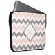 Denna moderna gigantiska laptop sleeve har en rosa och grått chevron mönster med anpassningsbar monogram för matchande rosa-skuggning.