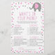 Det här är ett Rosa och Grått Elephant themed What's in Your Mobilare Baby Shower Game. *Vad finns i din Mobil? - Gästerna får poäng för varje objekt som de har på sin mobil. Den som får mest poäng vinner! Utformningen består av en rosa grått-elefant med polka dots. Djurbarndusch i zoo, babydusch, rosa-giskdusch, babydusch för flicka, artiklar i mobila, gissningsspel, babyduschaktiviteter, babyduschaktiviteter