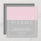 Modern bröllopsinbjudan för rosa av socker och grått av stål med en textmall fält på motsatt sida, så att du kan lägga till alla dina ytterligare uppgifter. För matchande objekt redigerar anpassningsbarna kontakten Designer LeahG. Det finns många tillgängliga kort av typen lagrar, inklusive texturerade, och visa listan så att du är helt nöjd.