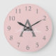 Rosa Grått Modern skript Girly Monogram Namn Stor Klocka