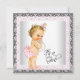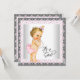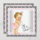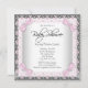 Rosa vintage flicka duschinbjudan med vackra flicka med rosa ruffle byxor och pärlor på en vacker bakgrund av rosa och grått svart snöre. Den här söta rosa- och grått babyduschinbjudan är lätt att anpassa för din händelse genom att lägga till information om din händelse, teckensnitt stil, teckensnitt storlek & färg och ordalydelse. Det här är en tryckt design utan äkta snöre, pärlor, bogar etc.