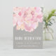 En söt och en modern flicka-inbjudan till engagemang i rosa, grått och vitt, med ett stort överdimensionerat blomklot för vattenfärger och ett stil-typsnitt med borstbokstäver. Baksidan är i fast rosa med en vit trellis mönster övertäckning.