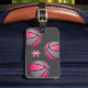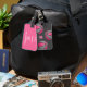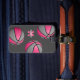 Den här helt enkelt designade basketlaget färg bagageväska har tre slumpmässigt arrangerade märkre som har omväxlande omformade rosa- och grått-paneler - personanpassa med namn och monogram på framsidan, adress-information på baksidan - av katz_d_zynes
