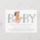 Rosa och grått-babyduschinbjudningar med ädelt mörk brunette flicka med söt rosa tutu och pärlsträngar på vattenfärgsbakgrund i blommigt vintage. Dessa inbjudningar till rosa- och grått-babyduschar kan enkelt anpassas efter din händelse genom att du helt enkelt lägger till dina uppgifter. Du kan också ändra bakgrunden till färg på framsidan och baksidan av denna söta flicka duschinbjudan.
