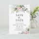 Rosa Grey Bröllop spara datum-kort. Den här inbjudan till snyggt & elegant bröllop innehåller en fantastisk, handmålad vattenfärg, rosa grönt. Sök efter matchande objekt i Rosa Greenery Collection för Watercolor Eucalyptus.