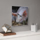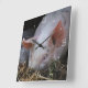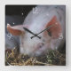 Ett foto av ett rosa gris med ett öra uppåt och ett sidospår, och ett komiskt uttryck när det roterar genom lite halm. Med siffror och punkter i vitt.
