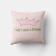 Snygg flickas accent kastkudde gjord i ett rosa och off-white randigt mönster. En söt serieprinsessa och hennes tränare, med grafisk text som läser Liten Prinsessa, på framsidan, och en krona, med grafisk text som läser Jag önskar jag var en Prinsessa, på baksidan. Namn i grönt, på framsidan, är redo att anpassas för din speciella lilla Prinsessa.