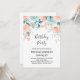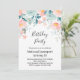 Födelsedagsinbjudan med en elegant blommig kant. Blommor och blad i rosa och grönt.