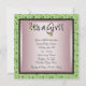 Bedårande rosa och gröna baby shower-inbjudningar. Rosa och grön söta som en liten skalbagge baby shower-inbjudningar. Denna söta rosa och gröna baby shower-inbjudan är lätt att anpassa för ditt evenemang genom att helt enkelt välja "Anpassa!" för att börja lägga till dina evenemangsuppgifter, typsnitt, teckenstorlek och färg samt formulering. Observera att alla de klistermärken, vykort och inbjudningsdesign du hittar på Zazzle är tryckta bilder utan faktiska ädelstenar, band, upphöjda, präglade eller tillagda delar eller bitar.
