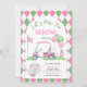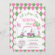 Rosa Grönt Argyle Golf Birthday Par-Tee-inbjudan Inbjudningar