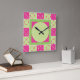 Quirky, funky-roligt-klocka med geometriskt rutnät mönster i rent modernt linjer, med växlande schackbrädesrutor som utgör ett minimalistiskt argument i coola bubblegum rosa och vismliknande mint-grönt, accentuerad med koordinerande cirklar. Ett trendig, en chic och en snyggt som gör ditt hem, din bostad eller ditt kontor ljusare och behagligt.