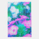 Rosa, Grönt, Blå och vita trädgårdsblommor Kökshandduk