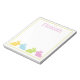 Det här söta anteckningsblocket har fina kaniner i söta skuggor av rosa, blått, grönt och gult på vitt fast. Anpassa med ditt val av namn eller speciell text i matchande rosa. Gör underbara party favors för Påsk eller någon gång på året!