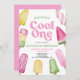 Det här är en Rosa Grönt Coola 1 Popsicle 1st Birthday Party-inbjudan.