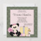 Rosa Grönt Damask Nalle Flicka Shower Inbjudningar