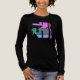 En liten version av en contemporary konst med feta, geometriska former i vattenfärgsliknande nyanser av rosa, mörk grönt och lavender är framtagen, inspirerad av stil i stamkonst och, i andra hand, mosaikplattor och modern abstrakt konst. Bild här på en "solid black" long-sleged Tri-Blend t-shirt, med en mängd t-shirt stilar och färg. att välja från. Det här "rika konsten" ser ut som fet och konstnärligt, ett chic som komplement till avslappnad, vardaglig bära (för aktiviteter från arbete/skola till idrott till avslappning/socialisering/körning runt städer). Särskilt för dem som arbetar på distans och/eller tillbringar mycket tid hemma bidrar skjortan till känslan av att vara "klädd" och "klädd" tillsammans med en personlig stil.
