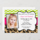 Inbjudan dina gäster till dig födelsedagsfest på ett roligt sätt med den här inbjudan till shock rosa, teal och leopard till utskriftsbilder.