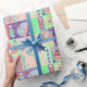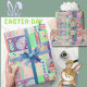 Den här söta, vita, coola som är papper med orange, blått, grönt, laxens rosa och lila färg har oregelbundna fyrkanter och fyrkantiga färger med söta dekorativa färger av bunnier, ägg, blommor och ägg basket. Se till att roligten slår in presenterna i Påsk med denna vackra, unika omslagna papper. Det har målats för hand med mjuk färg som kompletterar varandra och det är ett sömlöst mönster.