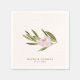 Denna rosa orkidéblommigt, löv av eucalyptus grönt, är en elegant och modern papper napkin-konstruktion för bröllop. Anpassa den med namn av brud, brudgumm och bröllop-datum.