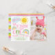 Rosa Grönt Vår lilla solstråle från första födelsedag Sällsynt solsken var en första födelsemeddelande med ett sött sol, två regnbågar, ett moln och lite handskriven stil. Det här är vår lilla stråle av solskensinbjudan på första födelsedag som är ett sött sätt för gäster från inbjudan att få ett färgstarkt solskenstema första födelsedagsfesten.