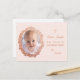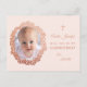 En blommig faddergåva som rekommenderas för en flicka. Det ovala platshållar fotot av ett barn är inuti en roseguldblommig krans, på vänster sida. På höger sida, med ett roseguldkors ovanför, finns texten i en liknande färg. Namnen och signaturen är skrivna i skrivstil, resten i gemena versaler. Bakgrunden är rosafärgad. Det finns också ett meddelande på baksidan, i samma rosa skrivstil.