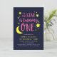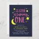 Rosa Gul Måne och Stjärnor 1-års Födelsedagsinbjud Inbjudningar