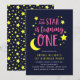 Bjud in familj och vänner till en första födelsedagsfirande med det här Rosa Gula Mån- och Stjärnor 1:a födelsedagsinbjudningskortet med en gul måne och stjärnor och orden "vår lilla stjärna blir ett år" i rosa, allt mot en mörkblå bakgrund. Inbjudan har ett mönster av gula stjärnor mot en mörkblå bakgrund på baksidan. Kolla in andra födelsedagspresenter här https://www.zazzle.com/rosewoodandcitrus/gifts?cg=196514072126829696&rf=238364477188679314