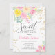 Rosa gul ros blommigt-manuset 16 födelsedagsfester med söt målad vattenfärg i blommigt, guld glitter konetti-gnistor. Kontakta mig om du vill ändra den söta 16 texten. Lägg till ditt foto längst bak