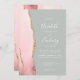 Den lämnat kant i eleganten med en modern bröllopsinbjudan har en rosa vattenfärgsagat gräns som trimmas med faux guld glitter. Med anpassadet text kombineras handskrift, formatmall och kursivt typsnitt i vitt på blekens grönt. Den omvända sidan har en passande och guld agate-design.