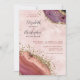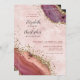 Bröllopsinbjudan till rosa Guld Agate med elegant guld glitter-utformning och vackra geodetiska marmor rosa och burgundsnurrar.