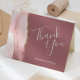 Tack vare det moderna bröllop-kortet i elegant finns en rosa vattenfärgsagat gräns som trimmas med faux guld glitter. Anpassadet kombinerar ord "Tack" i handskriftsskript och namnen på briden och groomen i kursivt teckensnitt på en dammig bakgrund i ro.