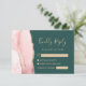 Det moderna bröllop OSA-kortet på den lämnat kant i eleganten har en vattenfärgad rosa i gräns som trimmas med faux guld glitter. Texten finns i handskriftsskript i guld-färgad och typsnitt på en bakgrundsbild av grönten. Den omvända sidan har en passande rosa och guld agate-design.