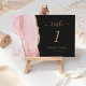 Det moderna kortet för bordsnummer i bröllop på den lämnat kant i eleganten har ett vattenfärgsagat i rosa i gräns som trimmas med faux guld glitter. Anpassadet kombinerar handskrift, kursiv och mönsterriktad typsnitt med guld-färgad mot svart bakgrund.