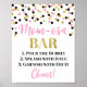 Momosa pub-skylten poster för babydusch i vitt med rosa, svart och guld konetti mönster med handskriven stil-skrift. Perfekt för babyduschar och baby sprinkle.