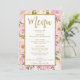 Rosa & guld- blom- kort för bröllopmenymall