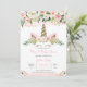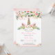 Rosa Guld Blommig Enhörning Baby Shower Inbjudningar