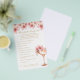 Lägg till lite kul på din bröllopsfest med dessa eleganta rosa och gyllene blommiga Petals and Prosecco bröllopsfest "vad sa brudgummen" spelplanscher. Dessa är gjorda för att matcha vår "Petals and Prosecco kollektion" och kan anpassas med dina egna frågor.