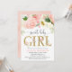 rosa guld Blommigt Flickbabydusch för barn Inbjudningar